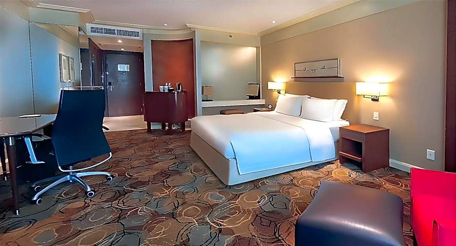 The premier king rooms offer 1 king-sized bed, a living room and a small dining area. Rooms are equipped with complimentary WiFi, a TV with cable channels, bathroom with walk-in rain shower, bathtub, bidet and full toiletries set. Other facilities include a working desk, mini-bar ref, free bottled water. The air conditioned room also has an IDD/DDD telephone hair dryer, ironing facilities, coffee/tea maker and an electronic safe.